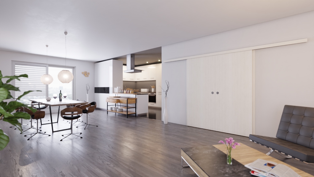 Te podwójne drzwi przesuwne to wspaniała kompozycja z klarownym koncepcją przestrzenną i wysoką funkcjonalnością!