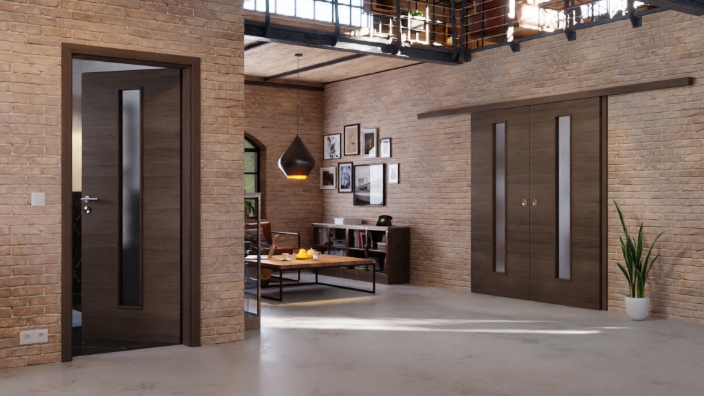 W środku obu skrzydeł drzwi znajduje się cienki kanał świetlny, który wzbogaca Twoje wnętrze wpuszczając światło dzienne. Gładka powierzchnia w kolorze szarym piniowym Cross tworzy dynamikę drewnianego designu.