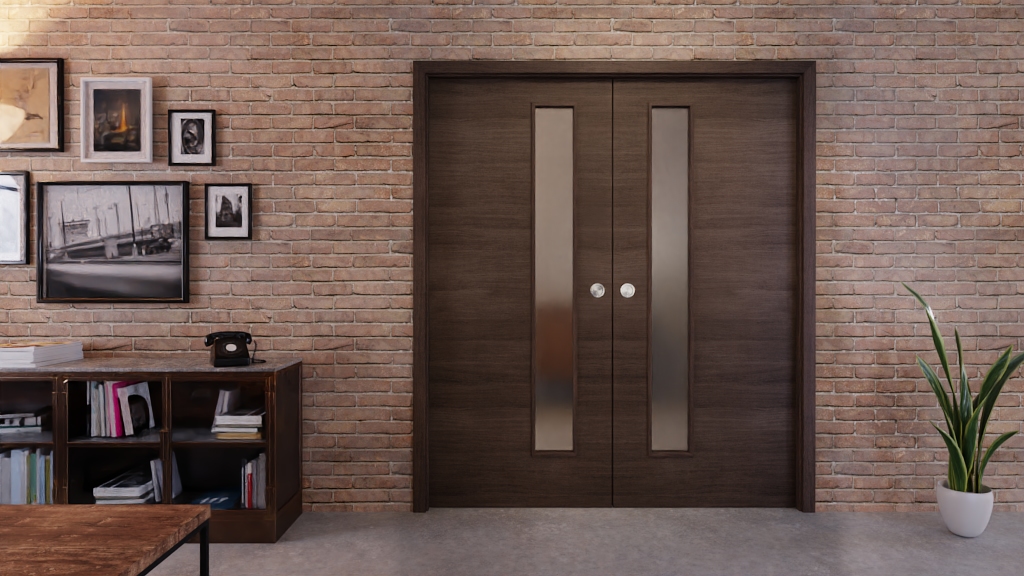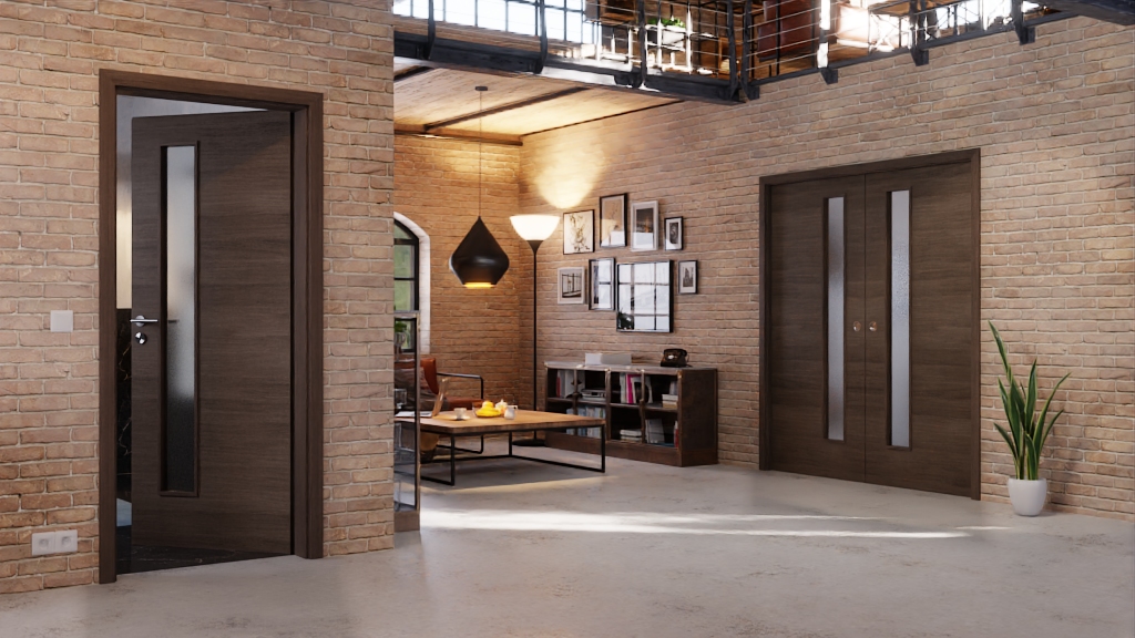 Gładka powierzchnia CPL zachwyca powłoką w kolorze szarym piniowym Cross. Dekor drewniany charakteryzuje się ciemnym i eleganckim wyglądem w Twoim domu. Boki zamka są wyposażone w wąski pas świetlny na każde skrzydło drzwi.