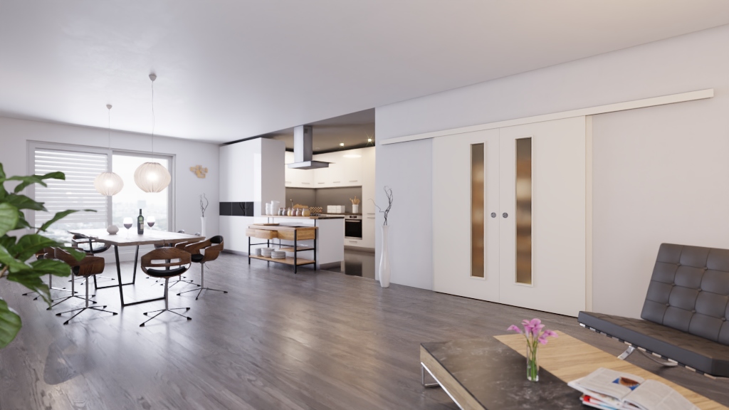W przypadku tych drzwi przesuwnych podwójnych obowiązuje motto: Czysty design na dwóch skrzydłach dla Twojego domu!