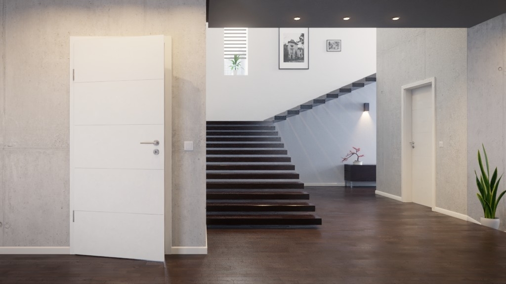 Malowane na biało drzwi wprowadzają do pomieszczenia elegancką świeżość, która szczególnie podkreśla minimalistyczny design.