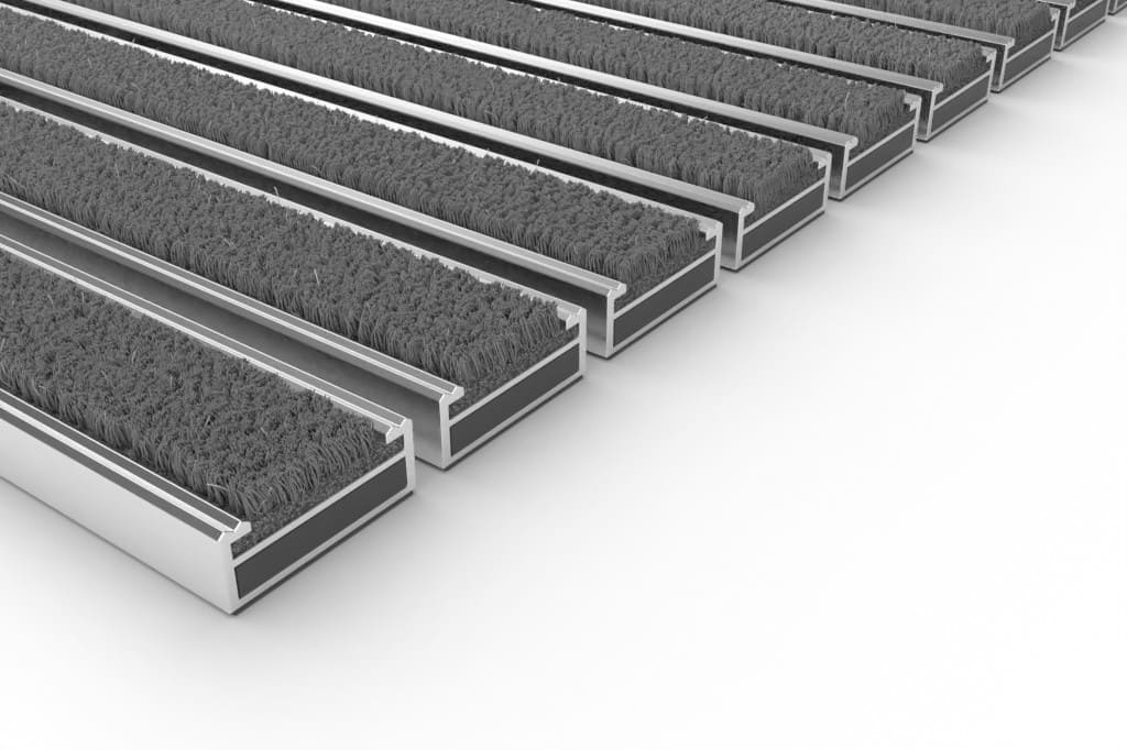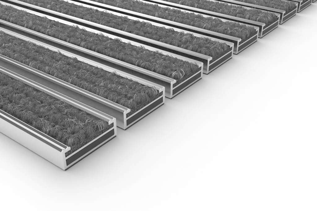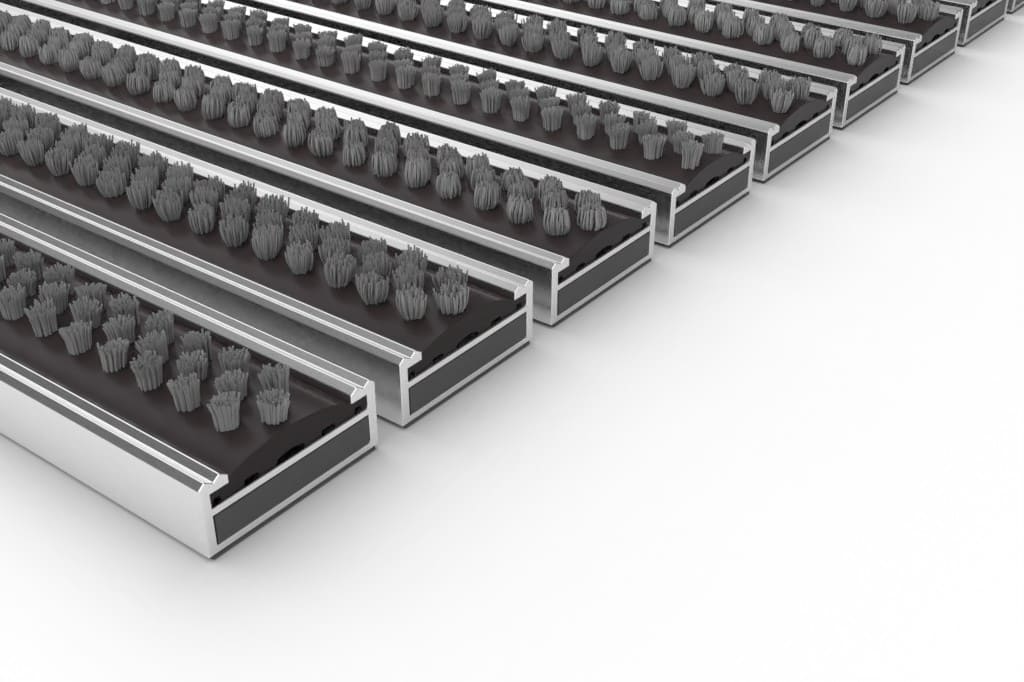 Mata aluminiowa składa się z różnych kombinacji wkładów materiałowych, które są osadzone w prostych profilach aluminiowych. Służy do dokładnego czyszczenia podeszew butów.