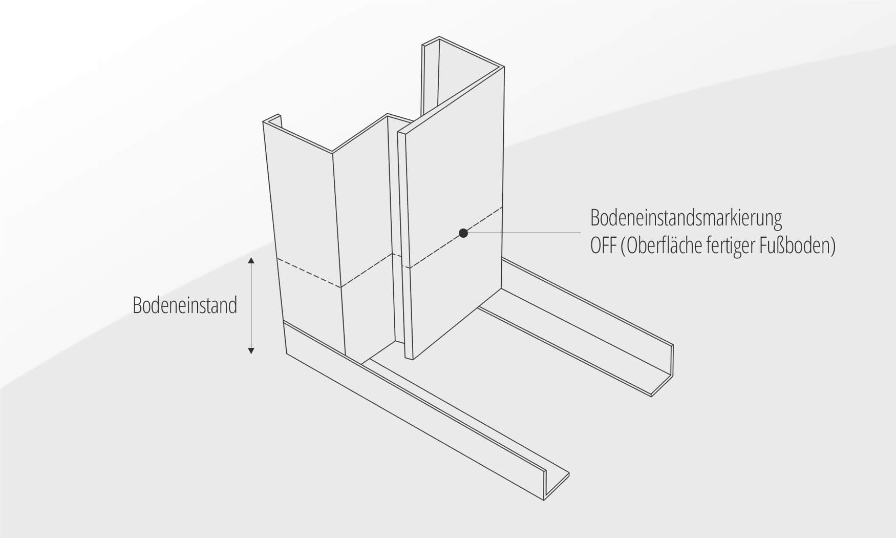 Standardowo wpust podłogowy wynosi 30 mm. W niektórych sytuacjach montażowych wymagany jest inny wymiar wpustu. Przez wpust podłogowy ościeżnica jest dłuższa. W niektórych przypadkach wpust można skrócić. Dla ułatwienia montażu wpust podłogowy jest oznaczony. Nacięcie lub inne oznaczenia wskazują, gdzie ościeżnica styka się z powierzchnią gotowej podłogi (OFF). Podczas montażu należy zwrócić uwagę na tę wysokość, aby wysokość przejścia odpowiadała założeniom projektu.