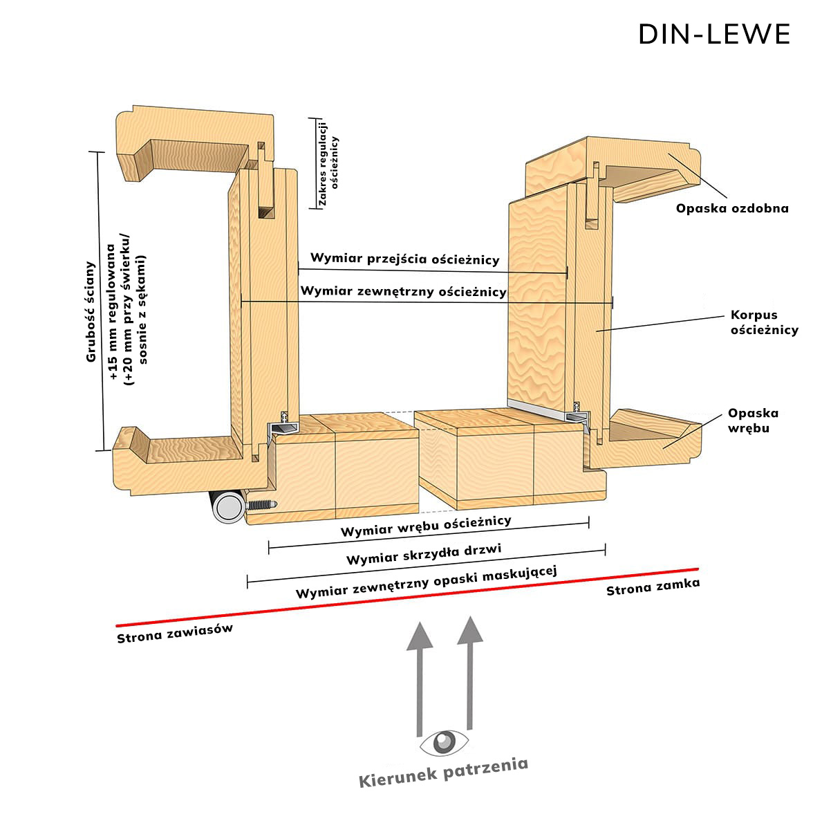 - Zewnętrzny wymiar skrzydła drzwiowego (często nazywany także wymiarem zamówienia) oraz