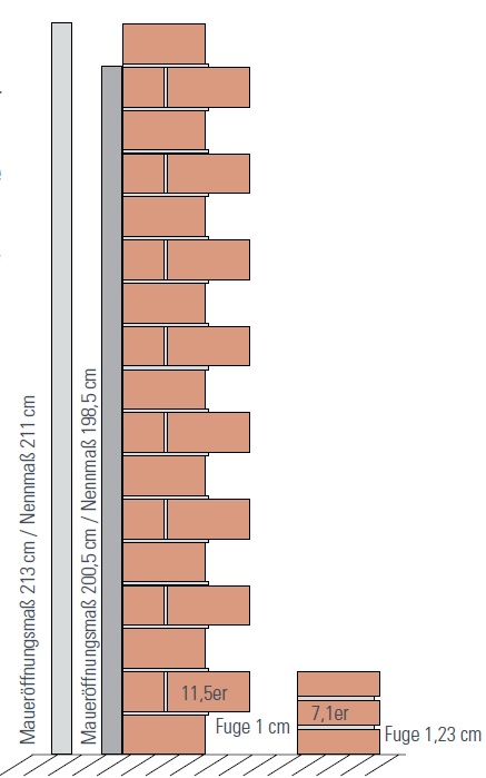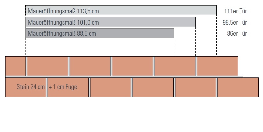 Wymiar surowej konstrukcji oznacza wymiary otworu w surowej ścianie. Możesz je łatwo zmierzyć w zakresie wysokości, szerokości i grubości ściany oraz wprowadzić do konfiguratora drzwi DEINE TÜR. Wysokość zawsze mierzy się pionowo od górnej krawędzi gotowej podłogi do dolnej krawędzi otworu w ścianie. Szerokość w wymiarze surowej konstrukcji mierzy się od ściany do ściany. Ważne jest, aby mierzyć w kilku miejscach, aby wykryć ewentualne odchylenia konstrukcji. Jeśli w Twojej konstrukcji występują różne wymiary, zawsze podaj nam najmniejszy wymiar surowej konstrukcji.