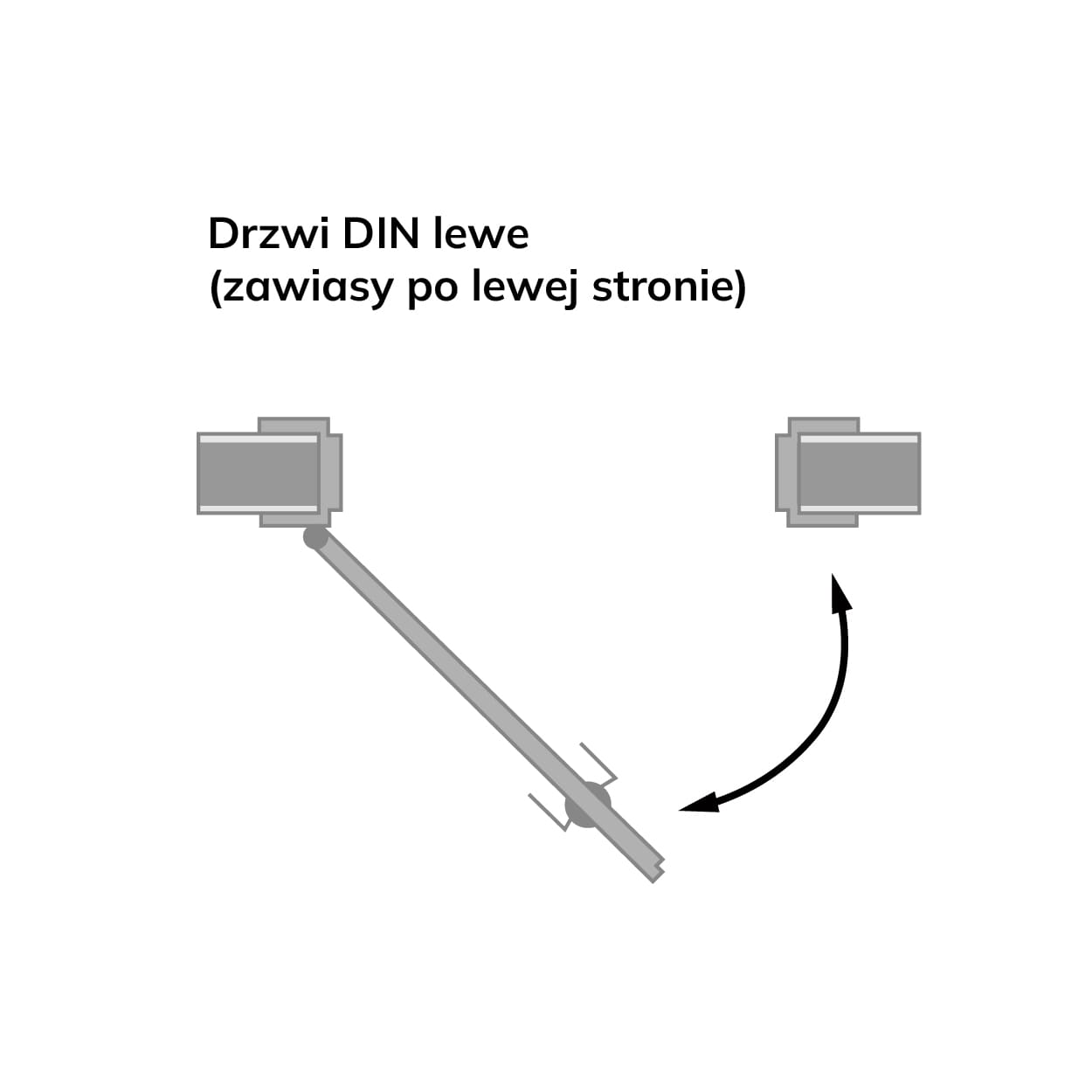 - Jeśli zawiasy są po lewej stronie drzwi, mamy do czynienia z otwieraniem drzwi „DIN lewa” – zawiasy po lewej.