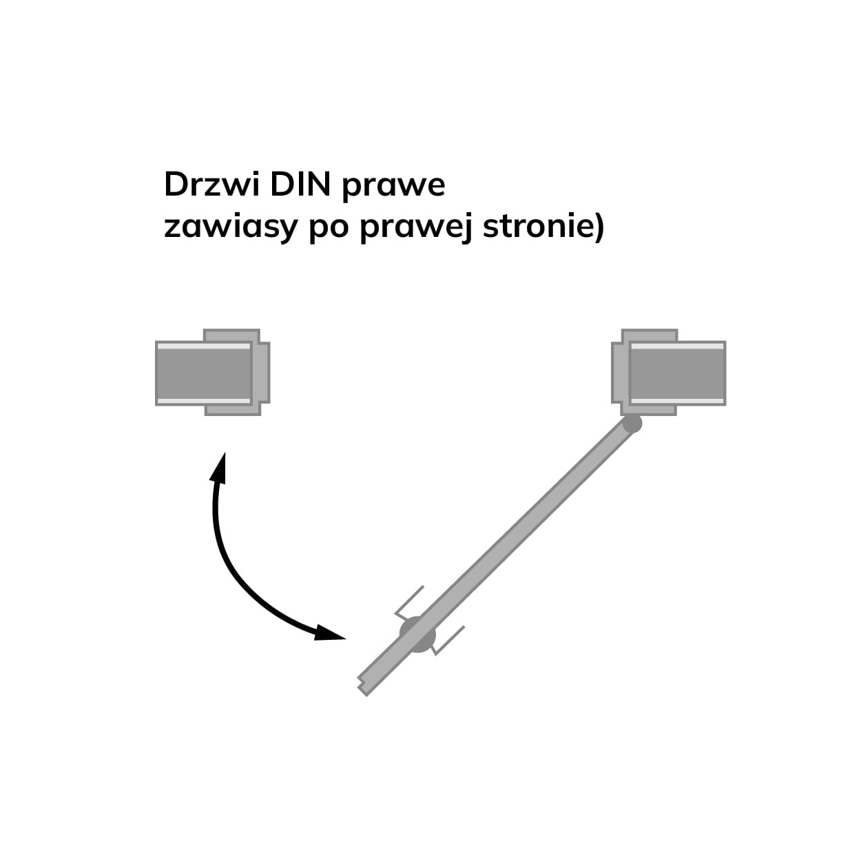 - Jeśli zawiasy są po prawej stronie, mamy do czynienia z otwieraniem drzwi „DIN prawa” – zawiasy po prawej.