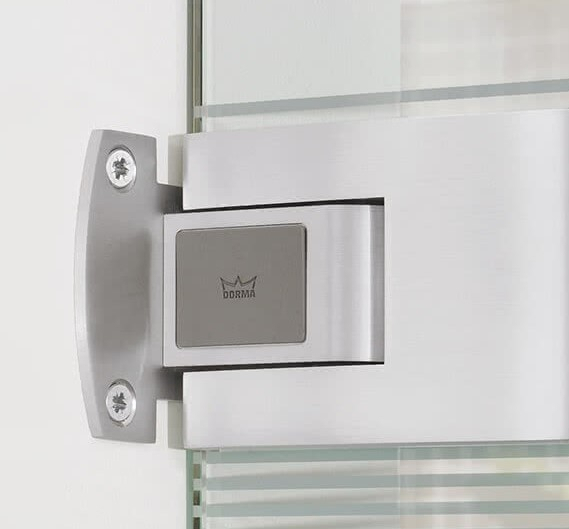 Nowoczesne zawiasy wahadłowe: Dzięki srebrnym DORMA Tensor Bändern zamontujesz drzwi wahadłowe w otynkowanej ścianie lub ościeżnicy.