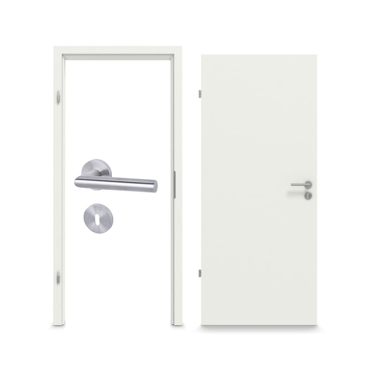 Zestaw drzwiowy, który spełnia wszystkie oczekiwania. Zestaw drzwi wewnętrznych Basic 4.15 w kolorze białym zbliżonym do RAL 9003 zapewnia wygodne zakupy, ponieważ zawiera skrzydło drzwiowe, ościeżnicę i klamkę.