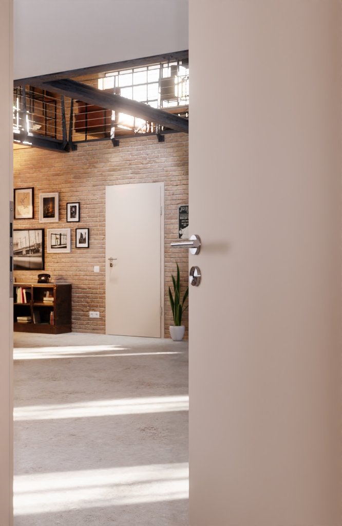 Uwaga: Zaokrąglona krawędź postformingowa Classen jest zaokrąglona po bokach skrzydła ruchomego. Natomiast u góry krawędź jest prostokątna. W skrzydle stałym zaokrąglona krawędź jest widoczna tylko po stronie zawiasów.