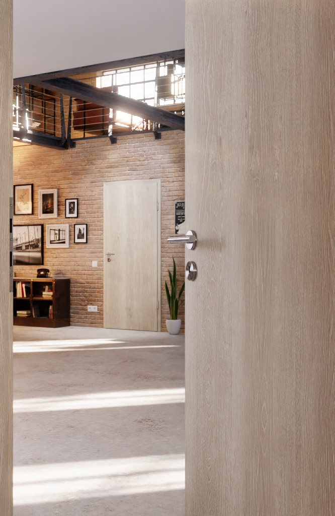 Praktyczny zestaw drzwi z odporną na uderzenia powłoką w kolorze dębu Kendal: