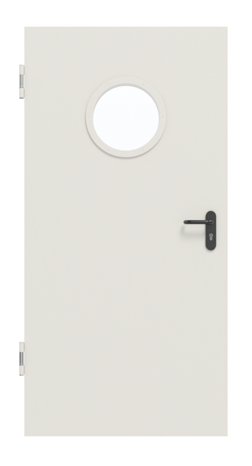 Drzwi stalowe mają grubość 65 mm i składają się między innymi z podwójnej, w pełni klejonej konstrukcji kompozytowej oraz okrągłego okna. Standardowo stosowana jest podkładka w kolorze zbliżonym do RAL 9002, a inne warianty kolorystyczne są dostępne za dodatkową opłatą. Dodatkowo zawierają zawiasy konstrukcyjne z łożyskami kulkowymi.