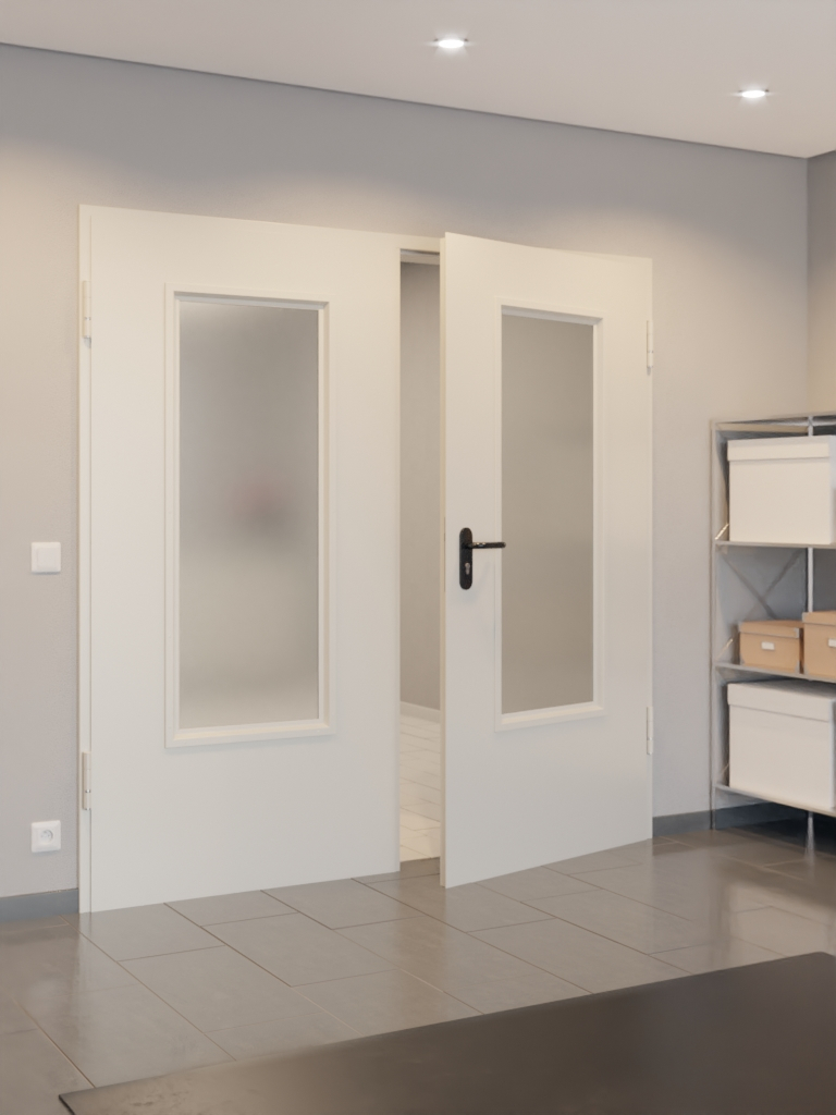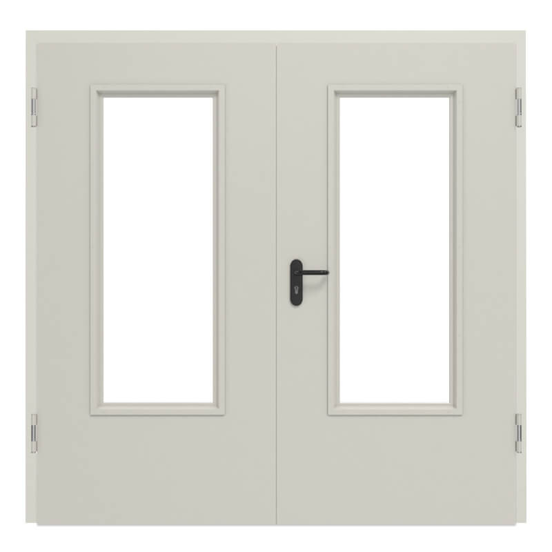 Wytrzymałe stalowe drzwi wewnętrzne wielofunkcyjne D65-2 OD od Hörmann z ramą DryFix i klamką:
