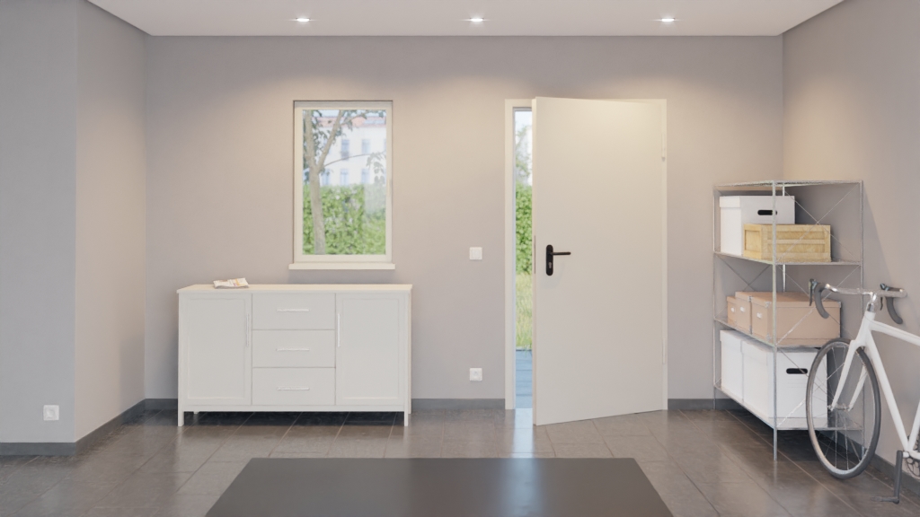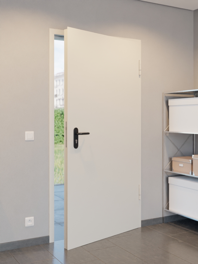 Drzwi przeciwpożarowe od Hörmann, łączące przestrzeń zewnętrzną i dom: