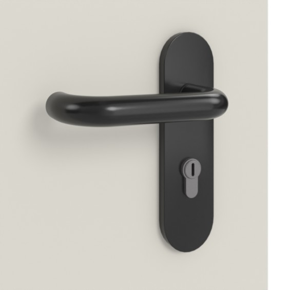 Czarna klamka z tworzywa sztucznego typu D-110 z krótką tarczą dopełnia zestaw: