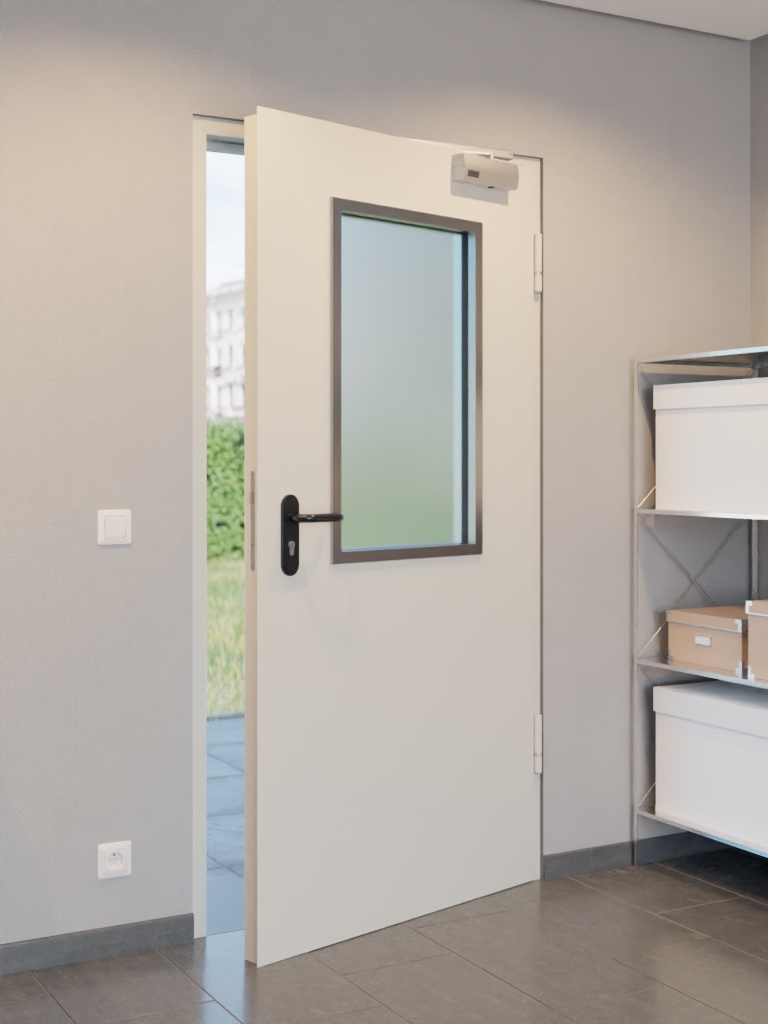Uwaga: Opcjonalnie drzwi mogą być skonfigurowane z funkcją ochrony przed dymem za dodatkową opłatą. Klasa przeciwpożarowa to EI2 30-C5-S200.