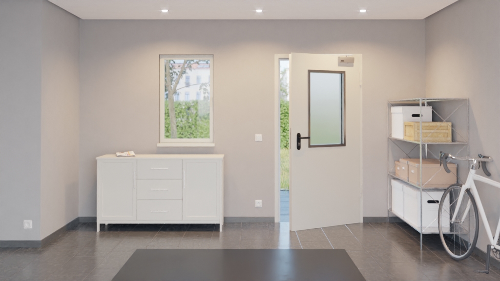Drzwi przeciwpożarowe od Hörmann, łączące przestrzeń zewnętrzną i dom: