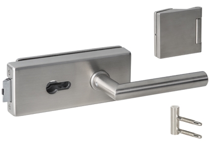 W matowej stali nierdzewnej zestaw okuć do drzwi całoszklanych Palma od Südmetall wygląda prosto i nowocześnie.