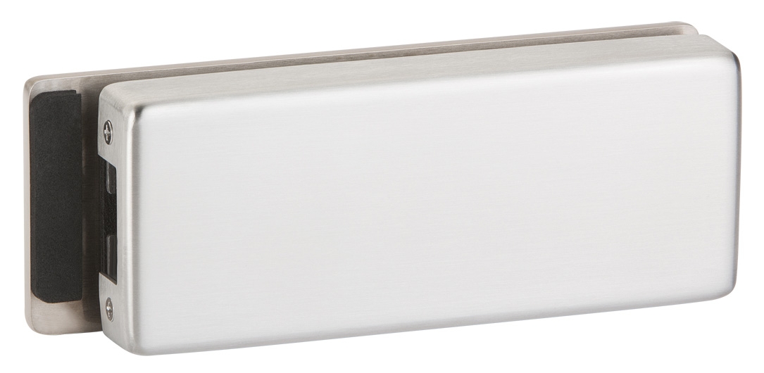 Zamek i przeciwwkładka mają prostokątny, minimalistyczny kształt. Cylindryczny uchwyt oraz subtelne zawiasy podkreślają prosty charakter zestawu. Wbudowana cicha pułapka umożliwia przyjemne, ciche otwieranie i zamykanie drzwi.