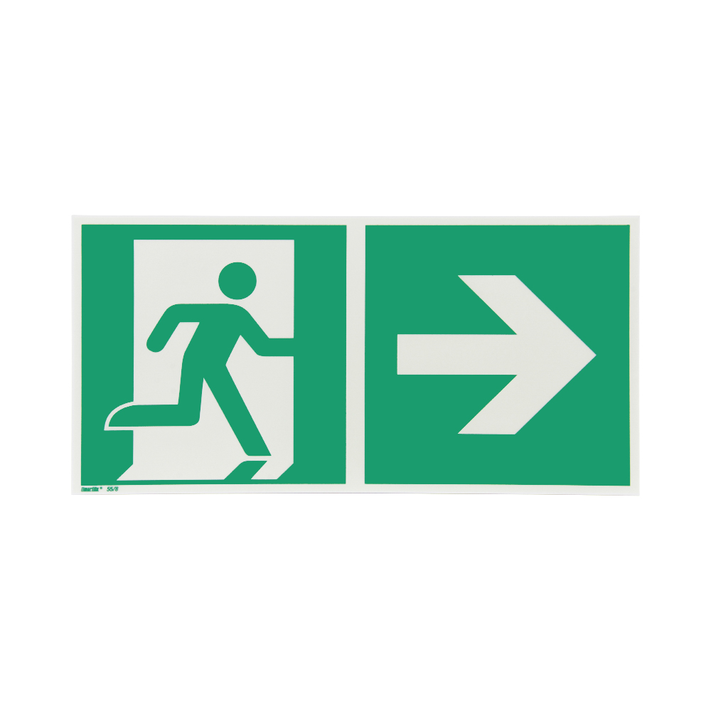 Wyraźny znak wyjścia awaryjnego z tworzywa sztucznego z kierunkiem strzałki w prawo: